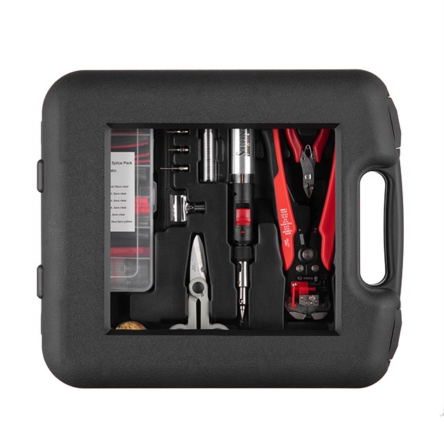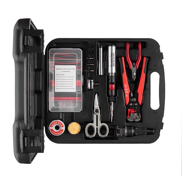 Удобный и качественный набор для быстрого ремонта. Включает в себя все необходимые инструменты и материалы для работ с электропроводкой. Идеально подходит как для домашних мастеров, так и для профессиональных электриков. Может применяться для выполнения таких задач как пайка, горячая резка, выжигание (пирография), плавка, термоусадка или удаление краски. Газовый паяльник изготовлен с применением современных технологий и стандартов, что обеспечивает максимальную эффективность работы и увеличенный срок службы прибора. Газовый паяльник крайне лёгок (100 грамм) и удобно лежит в руке. Воспламенение происходит при помощи пьезо-элемента, а время непрерывного горения составляет от 30 до 60 минут.