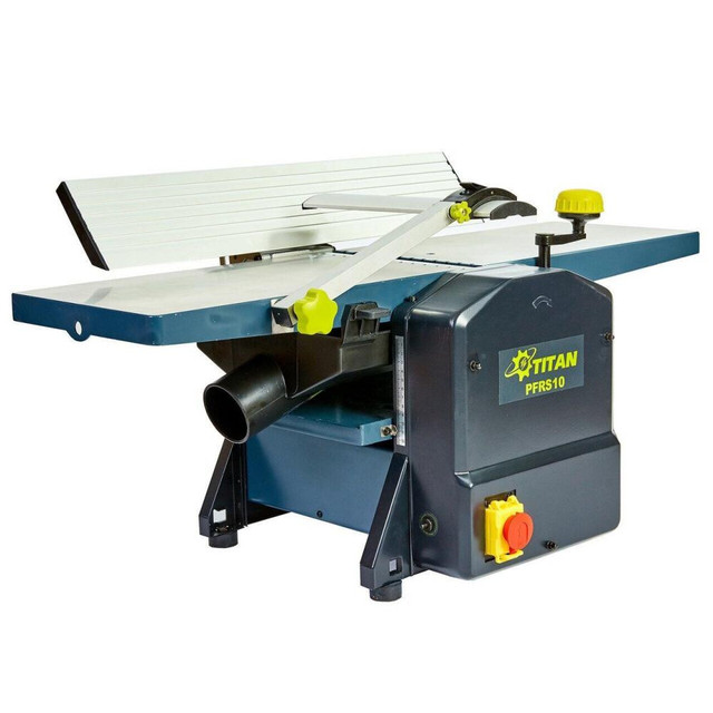 Фуговально-рейсмусовий верстат Titan PFRS10 - комбінований верстат, призначений для різної обробки деревини. Оснащений двома строгательными ножами, що сприяє акуратною і швидкій роботі без дефектів. Верстат обладнаний потужним двигуном і має високу продуктивність. Для ефективної і комфортної работѕ передбачений фугувальний упор з міцного сплаву. Верстат має невеликі габарити і вага, не заміт багато місця для установки. Рівень глибини стругання становить 2 мм, що є відмінним показником і дозволяє за один прохід зрізати значний шар.