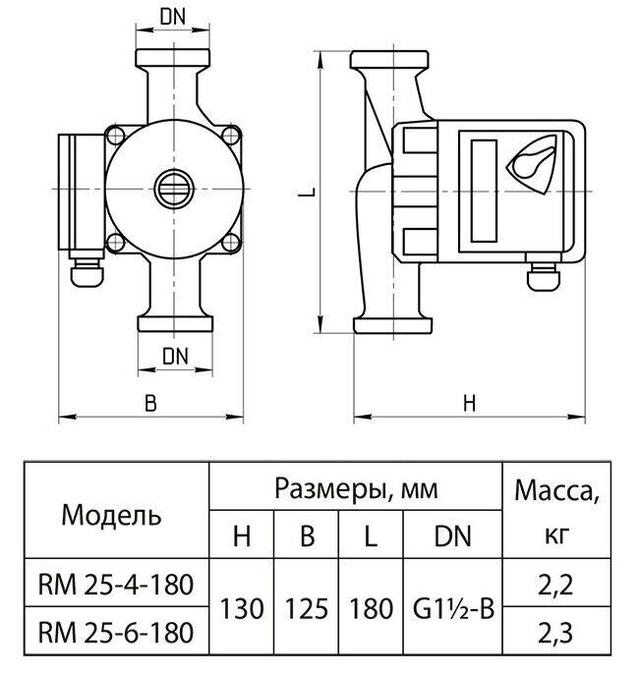 Циркуляційний насос RM25-4-180 "ARUNA" потужність 70 Вт,мах.напір 4.8 м,об'ємна подача 3.2 м³/ч