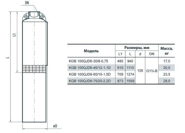 Свердловинний насос "Насоси+" KGB 100QJD6-60/15-1.5 D напір 90 м об'ємна подача 10 м3/годину