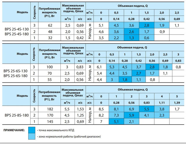 - щоб уникнути кавітаційного шуму тиск на всмоктуванні повинно бути не менше 1,5 м водяного стовпа при температурі + 90 ° С