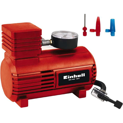 Автомобільний компресор EINHELL CC-AC 12 V является достаточно компактным, но в то же время высокопроизводительным устройством. Он оснащен 12-вольтовым разъемом, который позволяет его подключать к прикуривателю. От него он получает электроэнергию. С его помощью вы сможете накачать автомобильные, мотоциклетные и велосипедные колеса, мячи и небольшие воздушные матрасы. Процесс надува может быть выполнен в любом месте и за довольно короткий период времени. Встроенный манометр позволяет отслеживать текущее давление воздуха. Его шкала способна отслеживать давление от 0 до максимальных 18 бар. Шланг пристрою оснащений швидкозатискний клапаном, який можна використовувати з більшістю надувних предметів. Цьому сприяють три допоміжних адаптера, які входять в стандартну комплектацію.